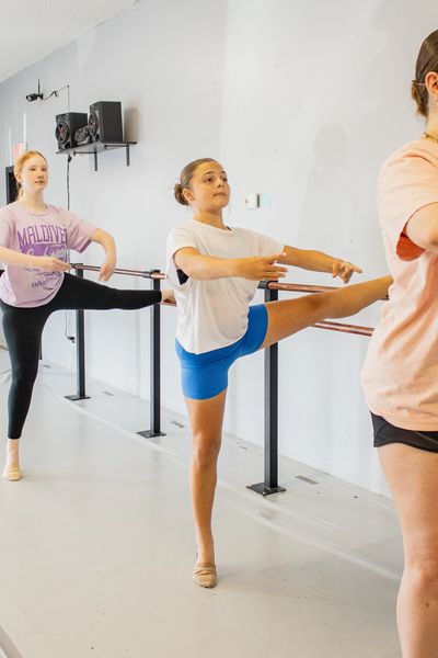 Black tennis shoes specified by class. Please contact studio director for specific shoes based on the class. Hair must be secure and out of the face.